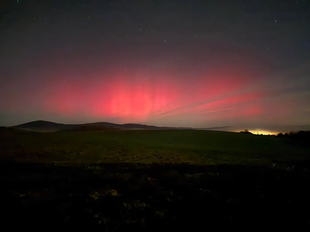 Polární záře rozzářila nebe nad Plzeňskem, vidět ji půjde i dnes v noci
