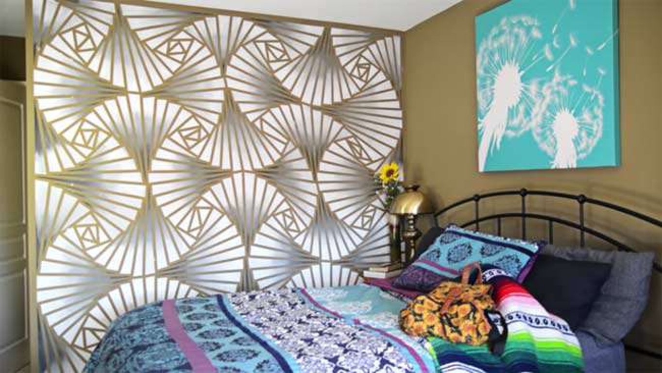 - Vzala obyčejnou malířskou pásku a začala z ní lepit ornamenty na zdi. Výsledek její práce je dechberoucí